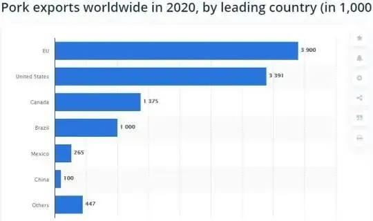 (圖:2020年全球主要豬肉出口國出口量預測)