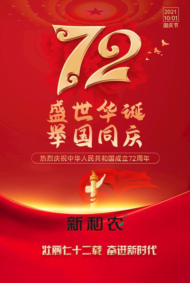 祖國是我們中華兒女的驕傲,尤其在國際局勢動蕩、新冠疫情肆虐的今天,我們更為祖國倍感自豪。國家強則民強,國家富則民富。在慶祝中華人民共和國成立72華誕的特殊時刻,全體新和農(nóng)人用牢記使命獻禮祖國,追求員工幸福感,追求客戶獲得感、追求社會責任感。我們將立足畜牧業(yè),發(fā)展好畜牧業(yè),為國家興旺發(fā)達,為國民身體素質(zhì)、智力提高不懈努力,實現(xiàn)夢想共同富裕。